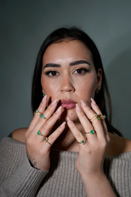 We offer a personalised selection of emeralds in your preferred size, colour, and treatment — working exclusively with certified-origin stones of exceptional beauty. Our catalogue also includes top-grade gemstones such as diamonds, rubies, and sapphires, carefully set to enhance their natural brilliance.
